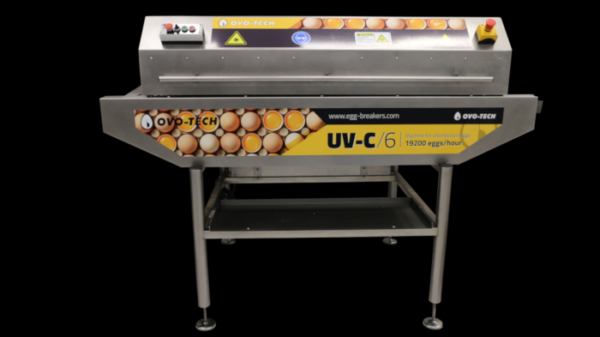 При помощи машины для дезинфекции яиц UV-C осуществляется дезинфекция и удаление бактерий со скорлупы яиц ультрафиолетовым светом. Все части устройства, контактирующие с яйцом, изготовлены из нержавеющей стали. Устройство доступно в размерах, адаптированных для туннельных моек для яиц MT (МТ-1, МТ-3, МТ-6/8. Перед дезинфекцией яйцо должно быть вымыто, не рекомендуется использовать поврежденное яйцо.